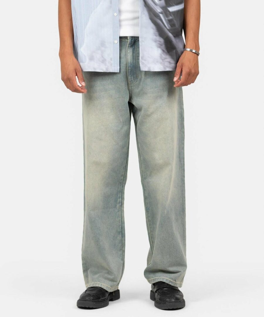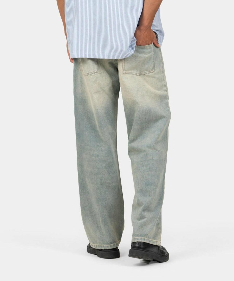 Our baggy denim jeans in vintage blue is the right choice for – comes in 100% raw denim without elastic. This helps to give the pants the perfect fit and stack on the shoes. The pants have a suitable more baggy fit than ours