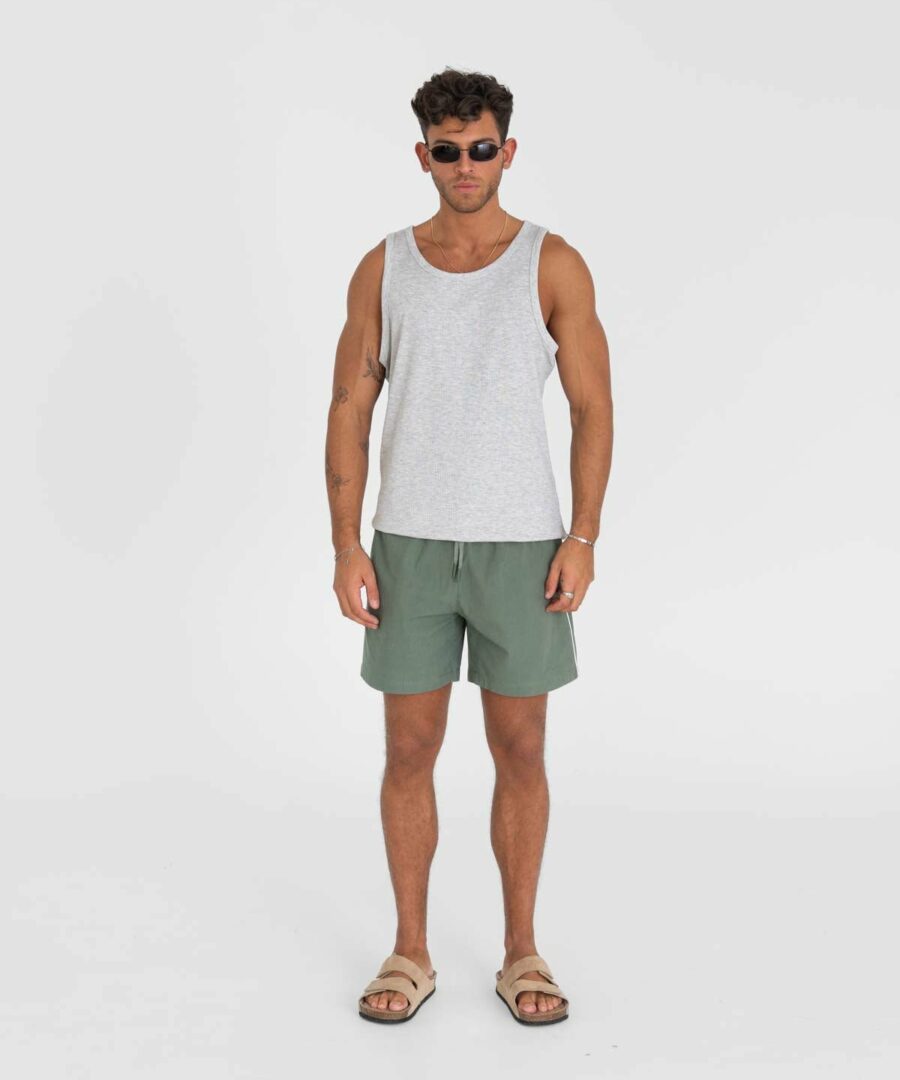 Bath Short Army is the perfect choice for those who want both style and functionality on the beach or by the pool. These bathing shorts in a cool army green color give a sturdy and relaxed look. With elastic at the waist and adjustable leash, a comfortable and personal fit is ensured. The light and quick -drying material makes them ideal for summer activities in and around the water. Practical side pockets give way to small things. Upgrade your summer look with these durable and trendy bath shorts in army color. Ready for sun and fun!
