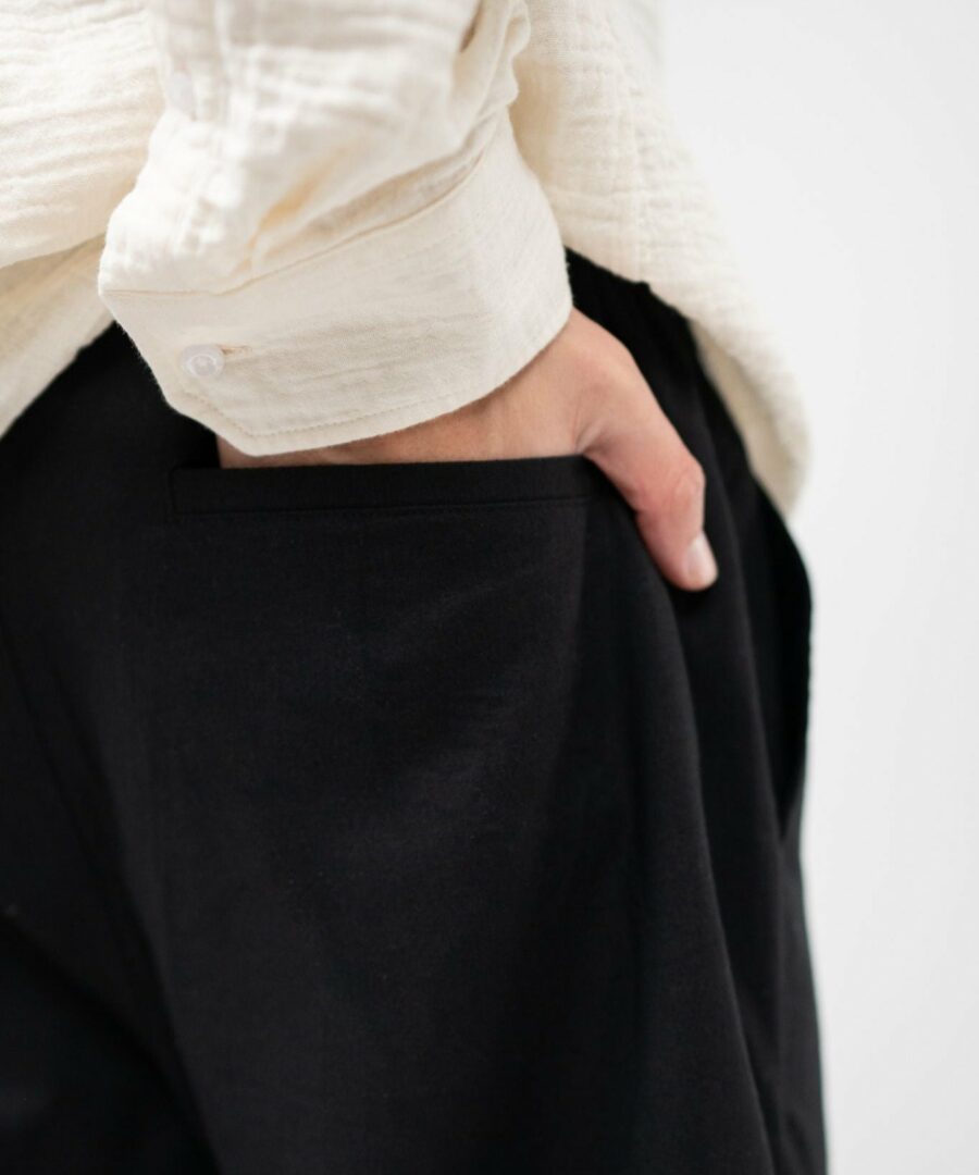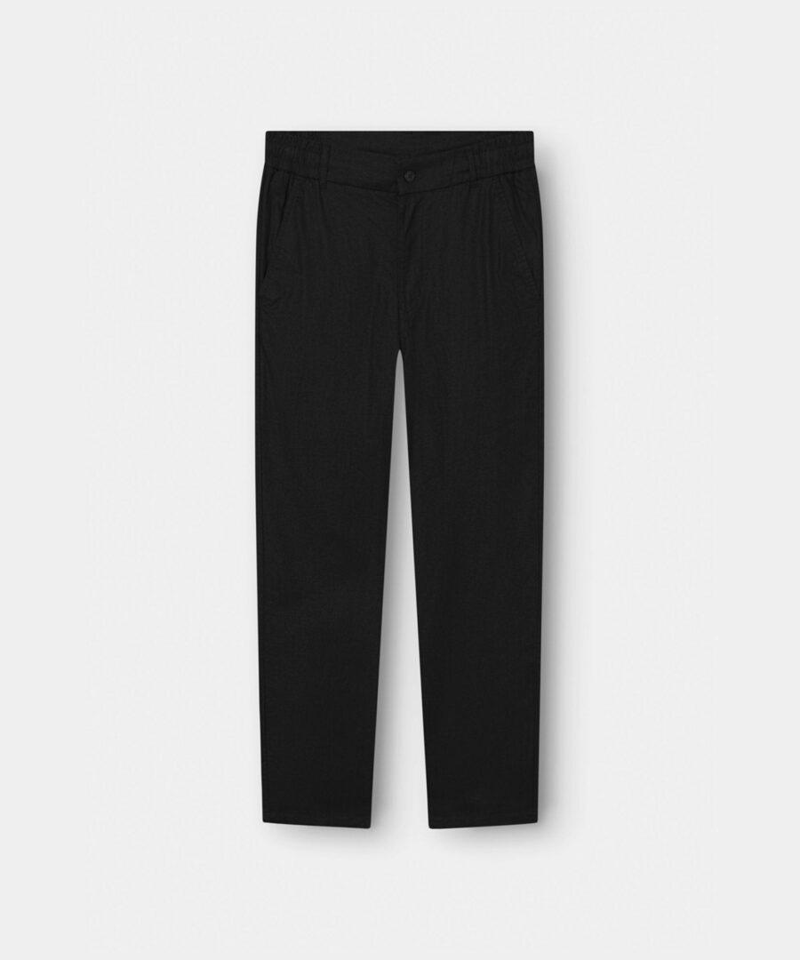 A pair of black flax pants that fit perfectly with your wardrobe. We have listened to you and improved our popular flax pants in black. This involves the addition of belt straps, interior cords, an improved elastic in life, in addition we have also improved the material so that the flax pants curl less. Match your flax pants in black with a For the perfect summer outfit.