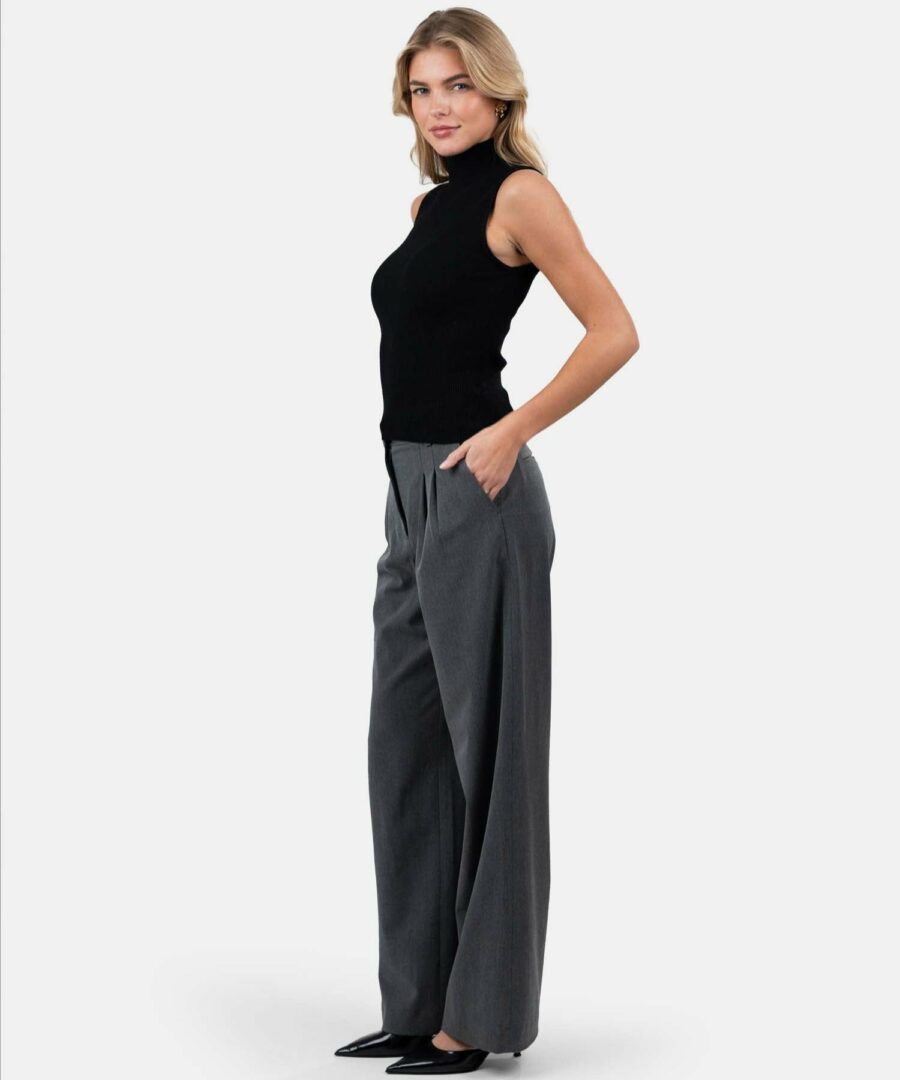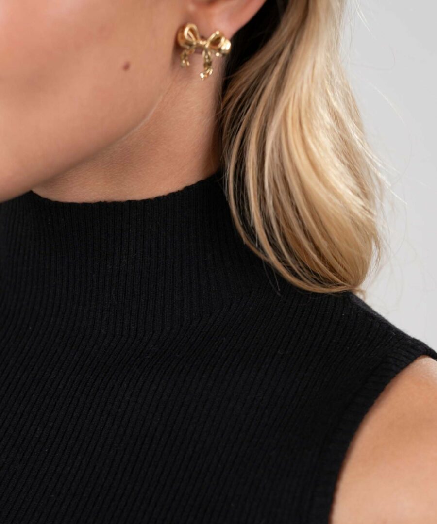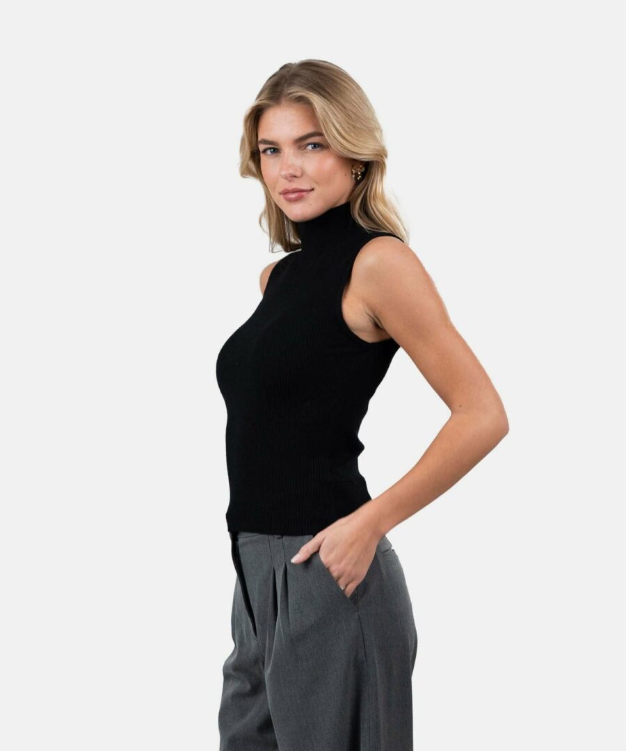 Black is always the safe choice and this high -necked knitted top is no exception. The timeless design is as versatile as it is sophisticated, making it a must-have in any wardrobe. The structure of the fabric adds subtle depth, while the body -fitting fit creates an elegant silhouette. Style it with everything from a sharp blazer to a floating skirt to create your own unique look. With this top you can feel both stylish and comfortable regardless of the occasion.