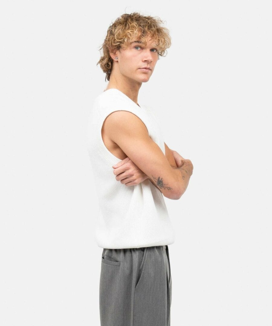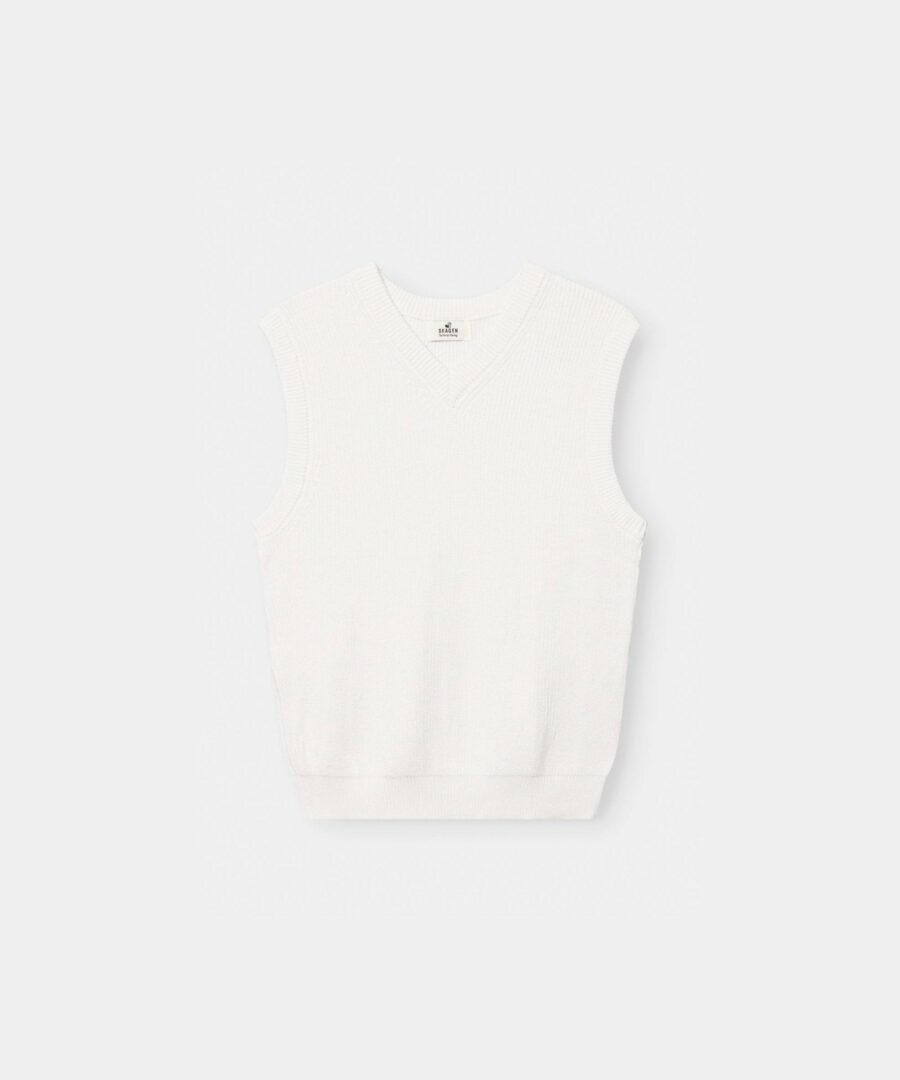 Our fine-knit vest is produced in 90% cotton and 10% polyester and gives a classic and stylish look over a t-shirt. The vest is ideal for the summer if you want a relaxed piece, which is still neat for all occasions. In addition, the vest V-Neck and rib knit edge in the neckline, along the armhole and bottom. See our other knitted sweaters and vests . Match your white knitwear with our For a stylish but relaxed look.