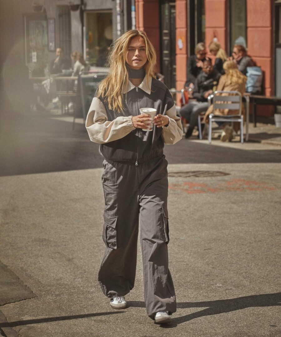 The Trackpants Come in a Steel Gray Color and Are Made of Tech Material. There are two pockets on the side and two pockets at the back. The fit of the trousers is baggy and they can be spun in at the bottom via an invisible elastic band. The Collection with Laila Hasanovic Includes 5 Unique Styles In Silhouettes That All Follow Current Fashion Trends. All items can be styled individual or together for a complete look.