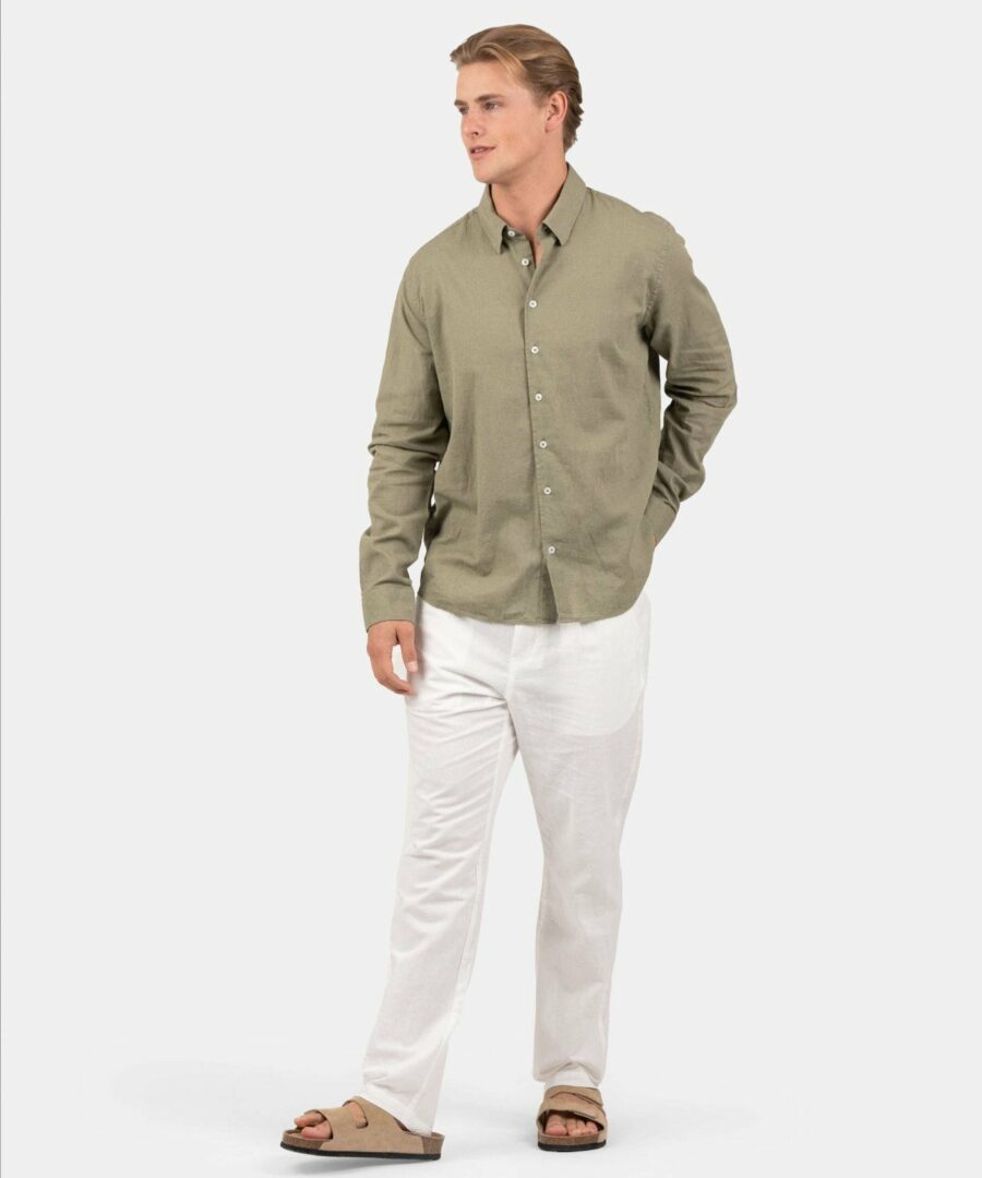 Our is made with improved fit and in new great colors. Of course, it comes in 70% cotton and 30% flax, giving both high comfort and a perfectly relaxed look for the summer. The shirt is made with a ‘normal’ fit, so we recommend that you take your normal str. Match your flax shirt in army green with our For the perfect look.