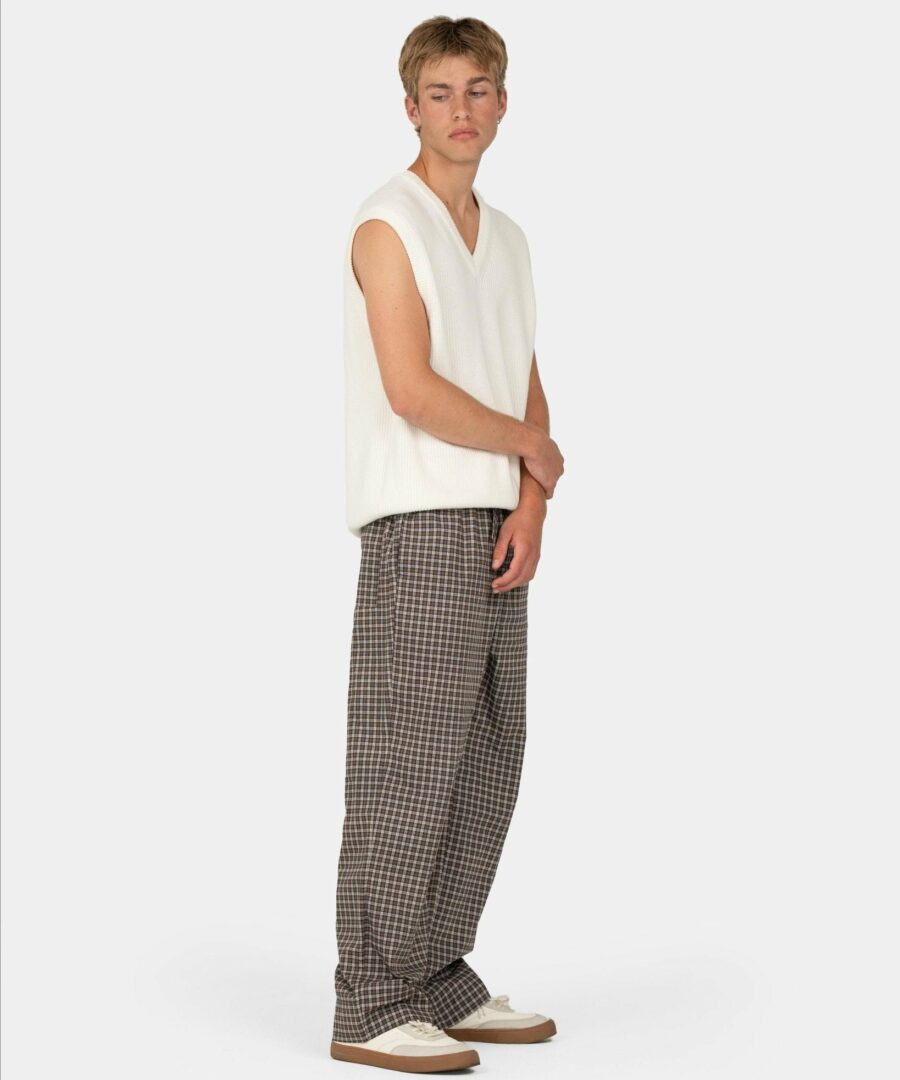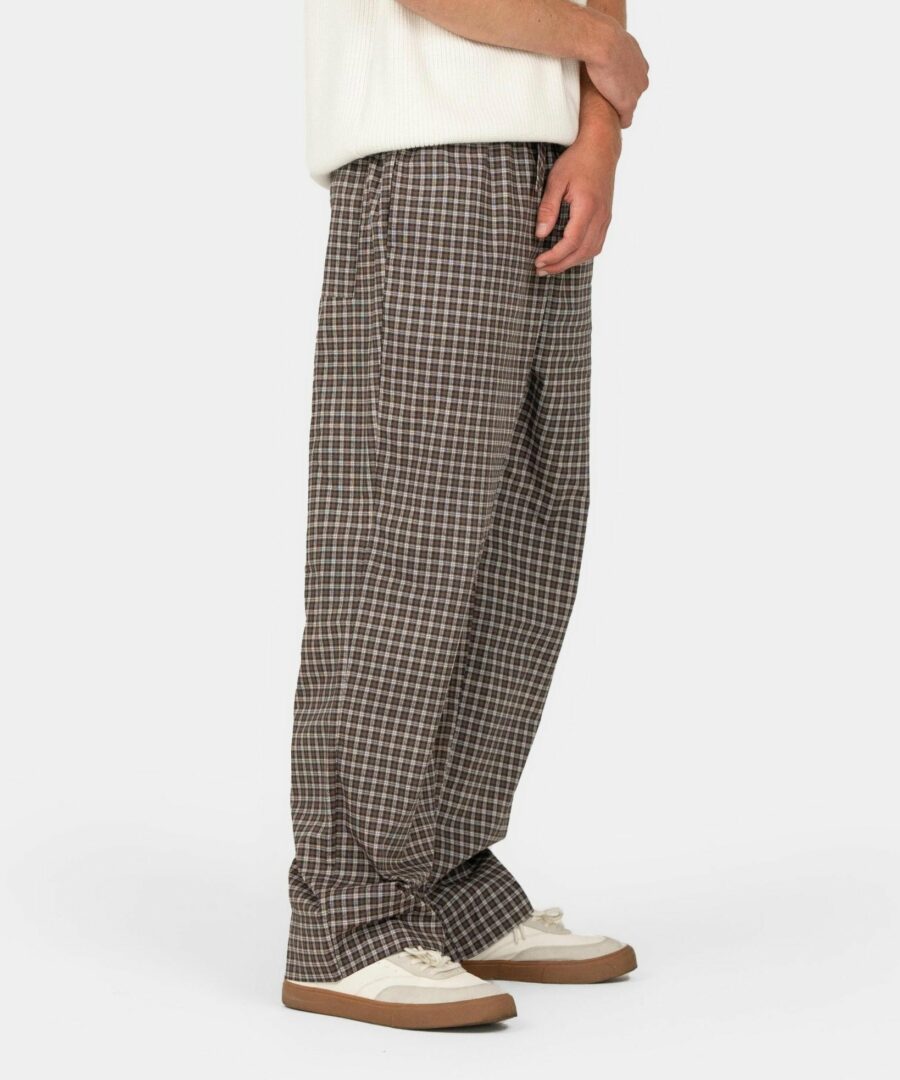 These loosely seated checkered pajama pants offer comfort and style for any occasion. With a tie tape in front and one Elastic edge combines the pants lightness with a modern style. They are airy and lightweight and have practical pockets on the side as well as two back pockets.