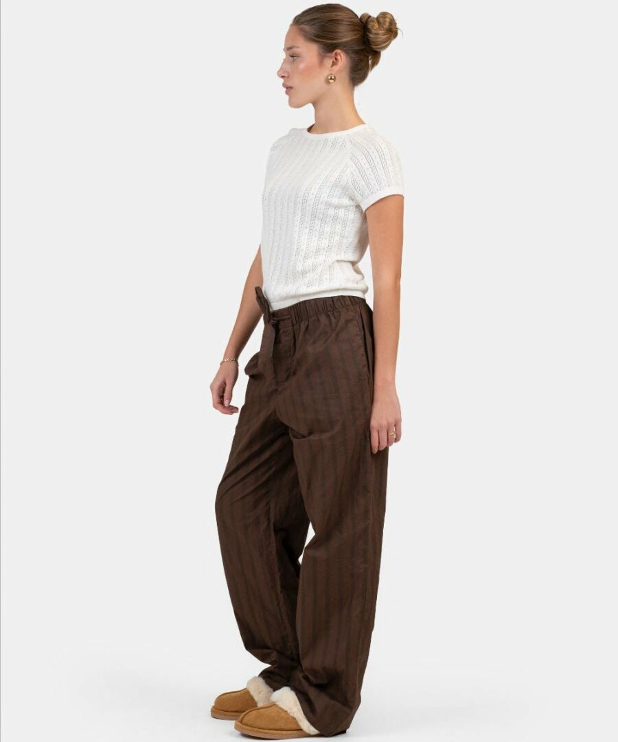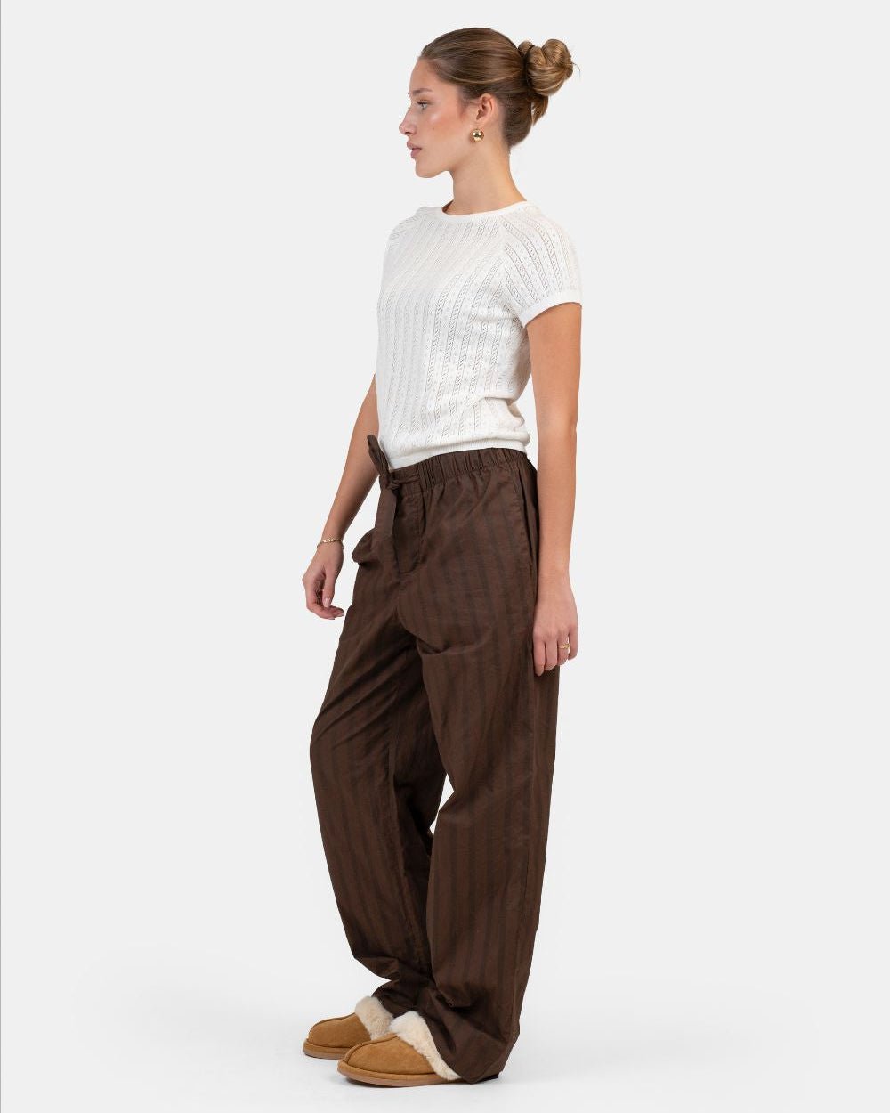 This pointelle baby tee in white is a soft and comfortable t-shirt, made of 100% cotton. The fine pointelle pattern forms a feminine expression, while creating a simple and timeless design, making it easy to combine with other styles.