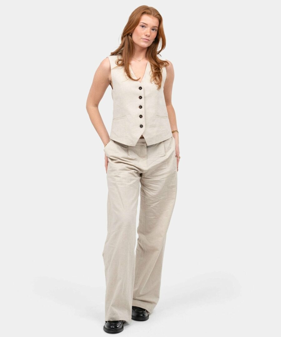 Our flax For women has a timeless design that at the same time stands out from the crowd. Pants are the ideal choice when you appreciate comfort but do not want to compromise on the style. The low -point fit and loose cuts give the pants a modern look that fits every occasion. The well -considered blend of flax and cotton adds a luxurious feeling that makes these pants a favorite in your wardrobe for many years to come. Match your suitpants with our in beige for a complete look.