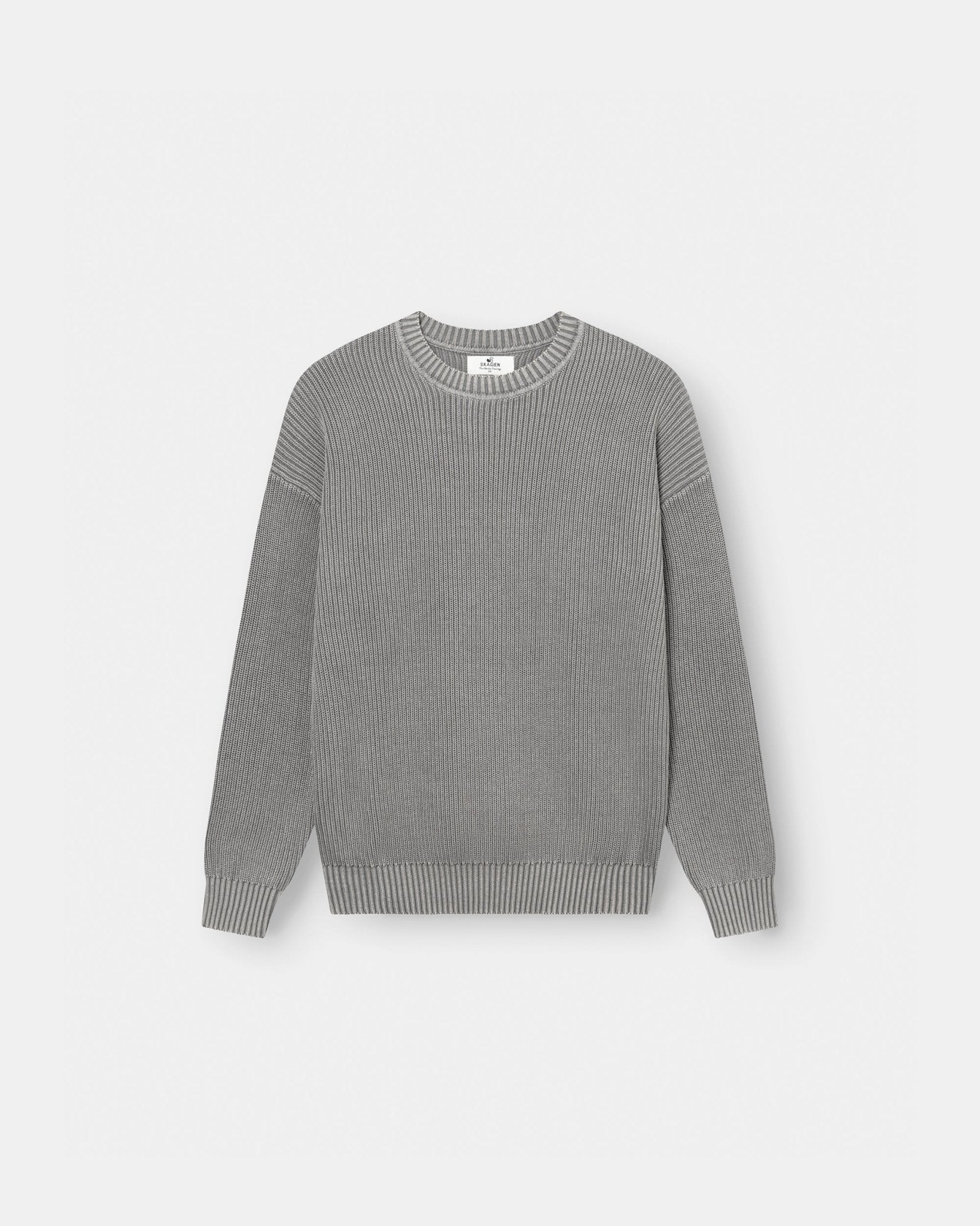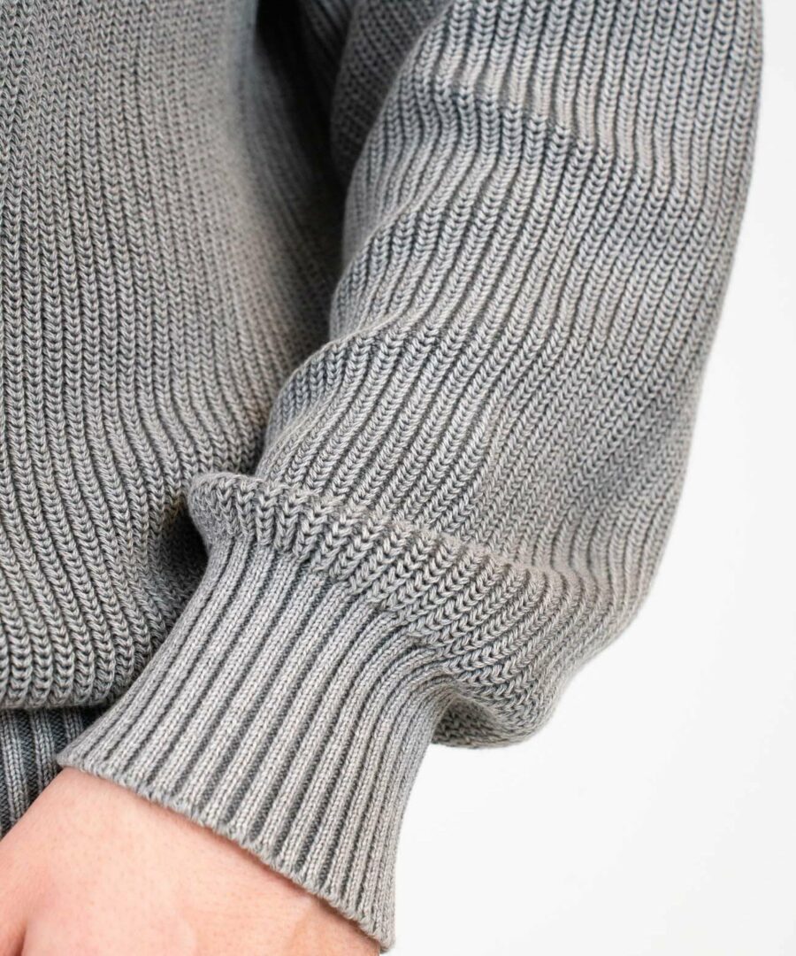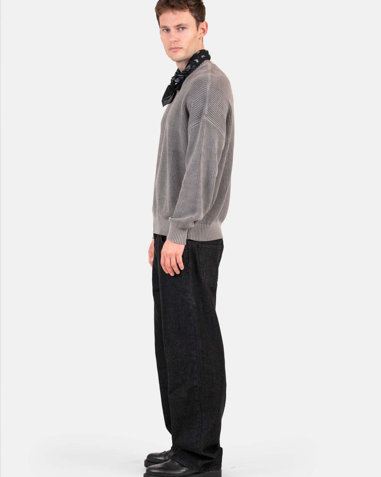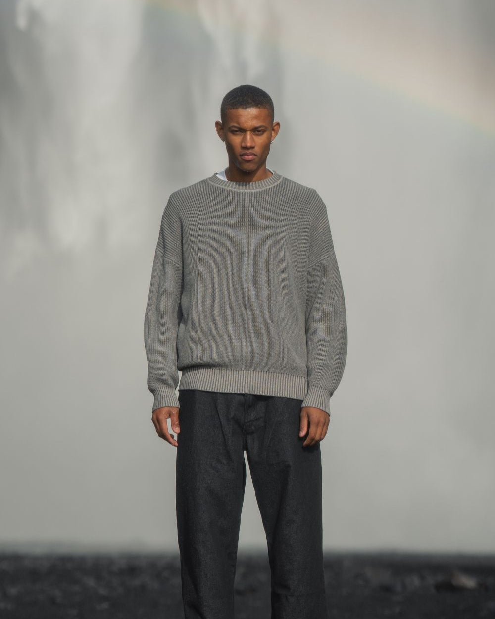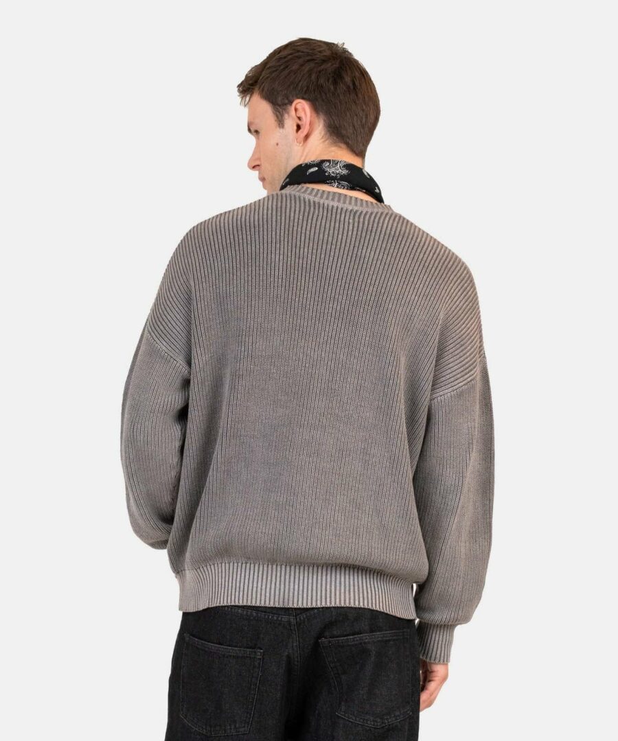 An upgrade to the classic knit we have designed the Washed Gray Knit. The sink gives the material the look of structure and detail. It has both ribs in the throat, at the wrists and at the bottom. The knit is going well with a pair of our black baggy jeans and a bandana around the neck